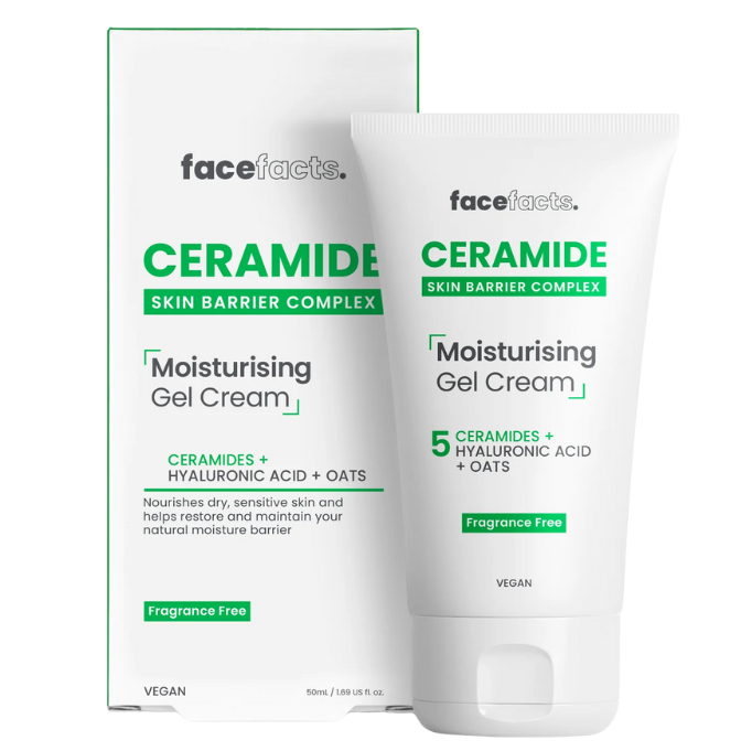 Buy Face Facts Ceramide Moisturising Gel Cream 50 ml on ninasfoodhut.com. This refreshing gel cream is formulated with ceramides that help restore and protect your skin’s natural barrier while delivering lasting hydration.